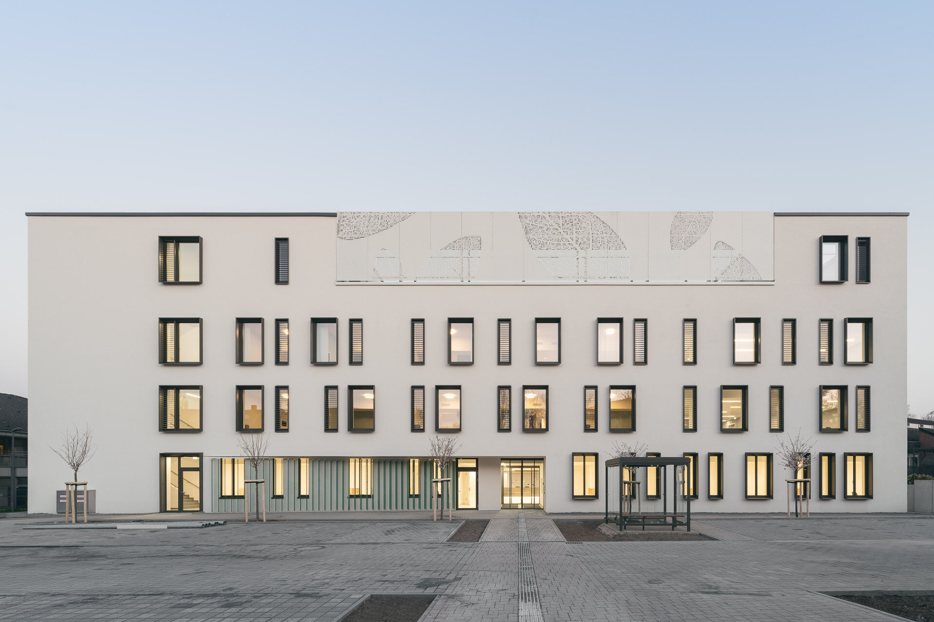 Der viergeschossige Neubau ist mit seiner klaren Formensprache und der hohen gestalterischen Qualität – sowohl in der äußeren Erscheinung als auch in den Innenräumen – ein architektonisches Highlight. Auf gelungene Art fügt sich der Bau harmonisch in das bereits bestehende Ensemble aus Alt und Neu ein, das wir bereits vor einigen Jahren auf dem Gelände realisiert haben. Im Neubau sind nun neben dem Ambulanten Zentrum im Erdgeschoss zwei Privatstationen in den darüber liegenden Etagen entstanden. Eine Besonderheit ist die großzügige Dachterrasse, die mit vielfältigen Sitzmöglichkeiten und begrünten Bereichen zum Verweilen einlädt.