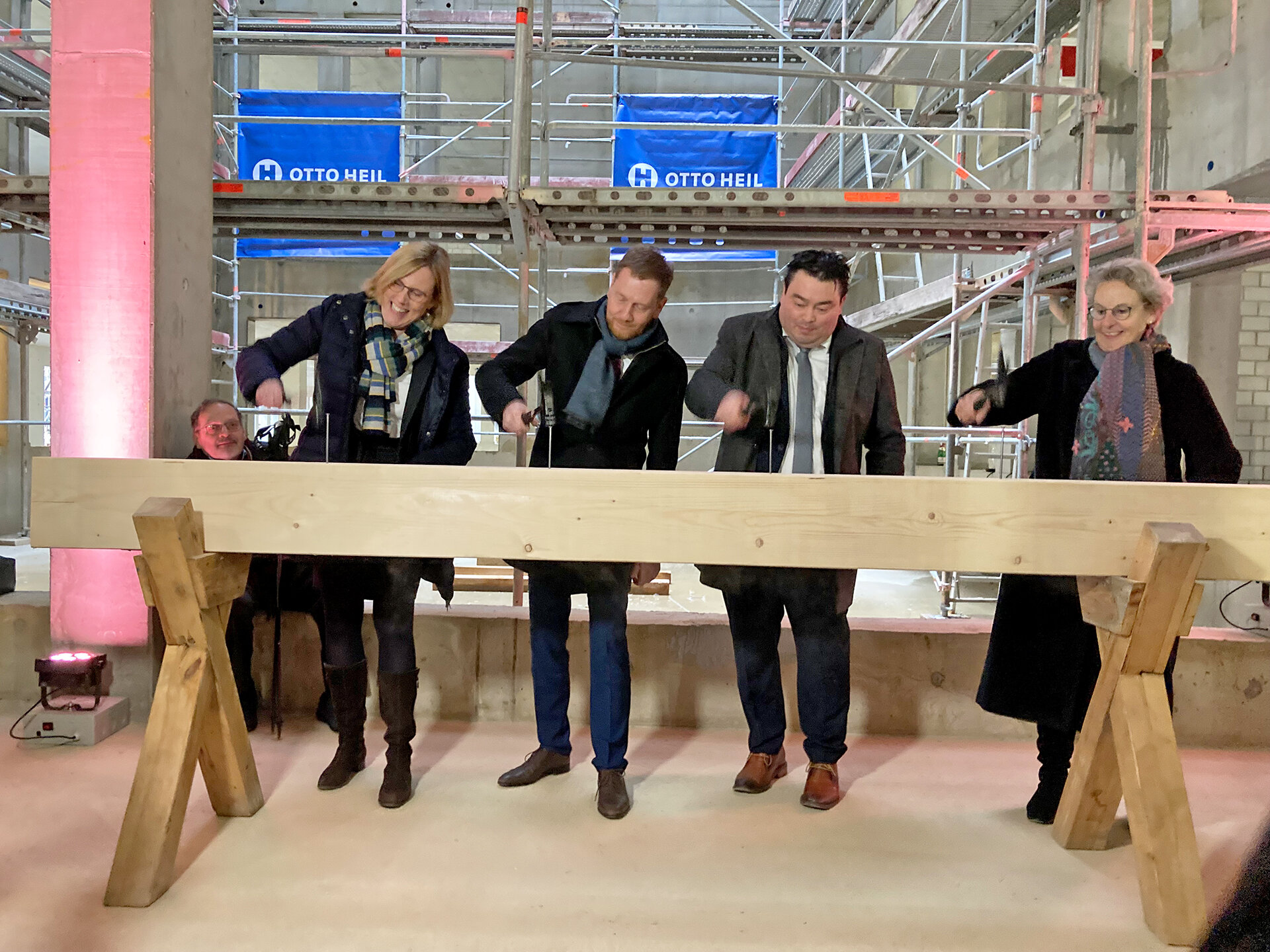 Am 12.01.2023 wurde nun Richtfest gefeiert. Neben a|sh als Generalplaner, vertreten durch Birgit Breitschuh-Westra, Thorsten Petroschka, Robert von der Höh, Markus Klein und unserem Partnerbüro AWB (LPH 6 und Objektüberwachung) waren Ministerpräsident Michael Kretschmer, der Klinikumsvorstand Prof. med. D. Michael Albrecht und die Dekanin der medizinischen Fakultät Prof. Esther Troost mit Beiträgen und Reden vertreten. Ferner sprachen auch die Leitung der Pflegedienstleistung Cornelia Büttner, sowie Prof. Ursula Staudinger, Rektorin der TU Dresden, Prof. Dr. med. Dr. rer. nat. Michael Bauer / Leitung Psychiatrie (Klinik und Poliklinik für Psychiatrie und Psychotherapie), Prof. Dr. Lorenz C. Hofbauer / Leitung UniversitätsCentrum für Gesundes Altern und Prof. Dr. med. Triantafyllos Chavakis vom Institut für Medizinische Mikrobiologie + Virologie im Uniklinikum Dresden.