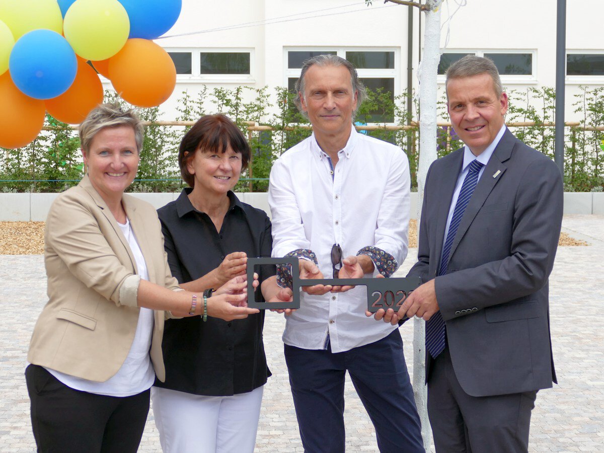 Nach drei Jahren Planungs- und Bauzeit fand am 18. Juli die Einweihung des Erweiterungsbaus der Geschwister-Scholl-Schule (GSS) in Leimen statt. In entspannter Atmosphäre übergab unser leitender Architekt Martin Hof bei der symbolischen Schlüsselübergabe den Schlüssel an die Konrektorinnen Katrin Hechler und Beate Grubisic sowie an Oberbürgermeister Hans D. Reinwald.