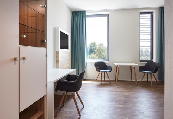 Bereits abgeschlossen sind unter anderem die Neustrukturierung des Zentral-OP und der Zentralsterilisation. In einem weiteren, dem nunmehr 7. Bauabschnitt, wird die Einbindung einer Akutgeriatrie umgesetzt. Als neuer zweigeschossiger Innenhoftyp schließt der Baukörper im nordöstlichen Bereich des Klinikums an. Im Innenhof wird ein Patientengarten mit einer Gehschule entstehen. Verschiedene Belege sollen die Koordination der Patienten anregen. In der ersten Ebene wird eine Tagesklinik mit 15 Plätzen sowie Arzt- und Versorgungsräume geplant. In der oberen Ebene entsteht die akutgeriatrische Station für 41 Patienten.