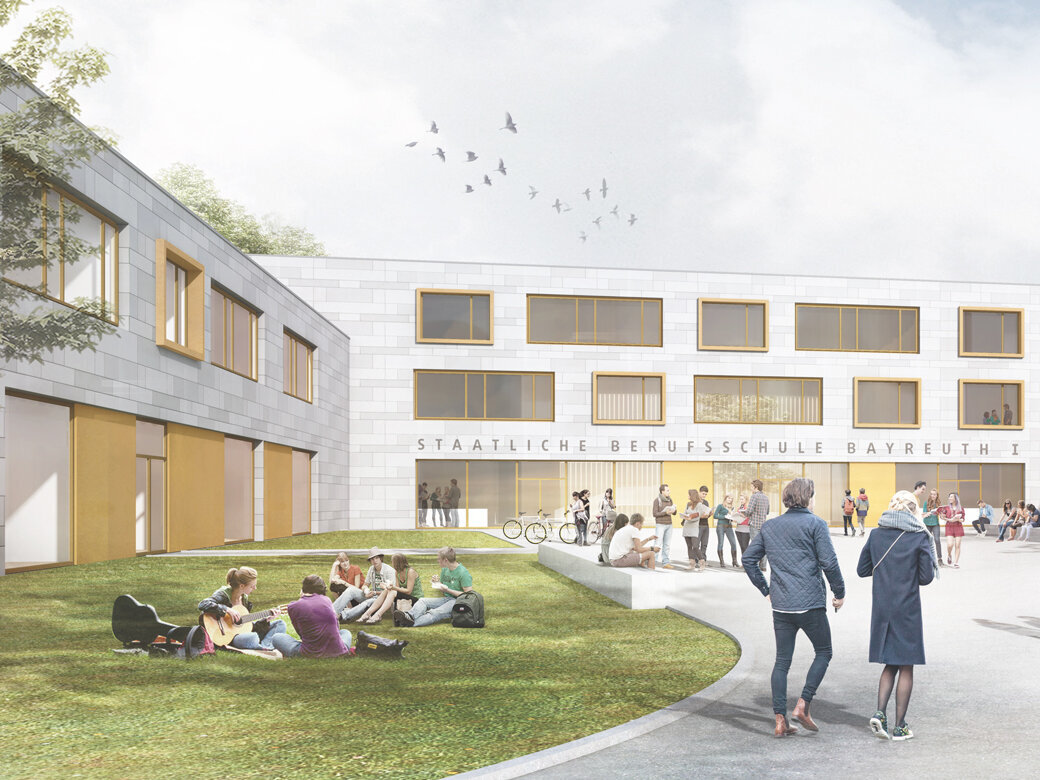 Aus einem europaweiten Verhandlungs- und Wettbewerbsverfahren wurde der Entwurf von a|sh architekten für den Neubau der Staatlichen Berufsschule I in Bayreuth ausgewählt.
