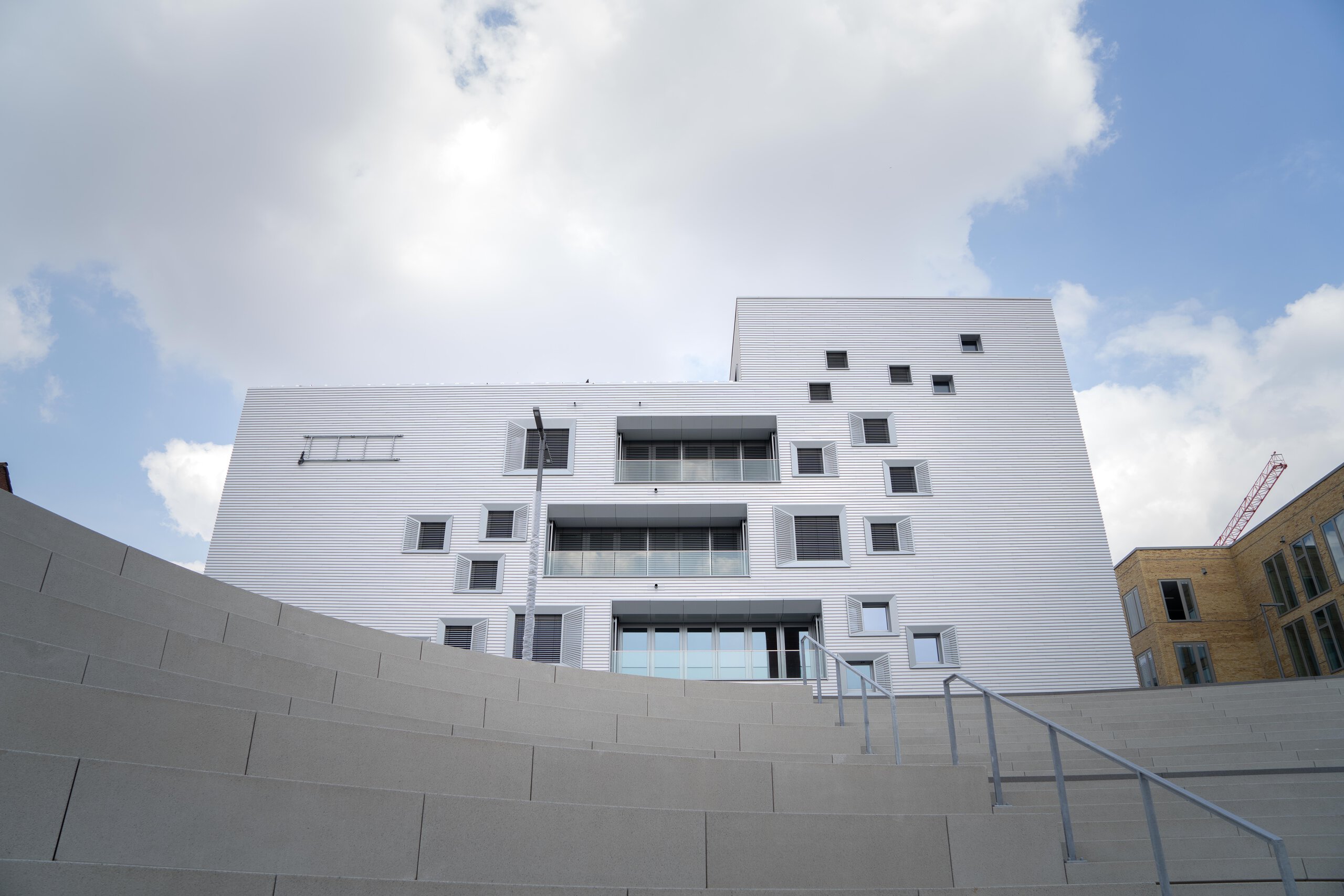 Das 2021 fertiggestellte fünfstockige Gebäude wurde mit eigens hierfür entwickelten Keramikschindeln verkleidet, die der Fassade einen besonderen Glanz verleihen. Im Inneren des Kubus finden sich auf fast 8.000 m² flexibel skalierbare Flächen für Büroräume, Coworking Areas, fünf Labore, Reinräume und Werkstätten.