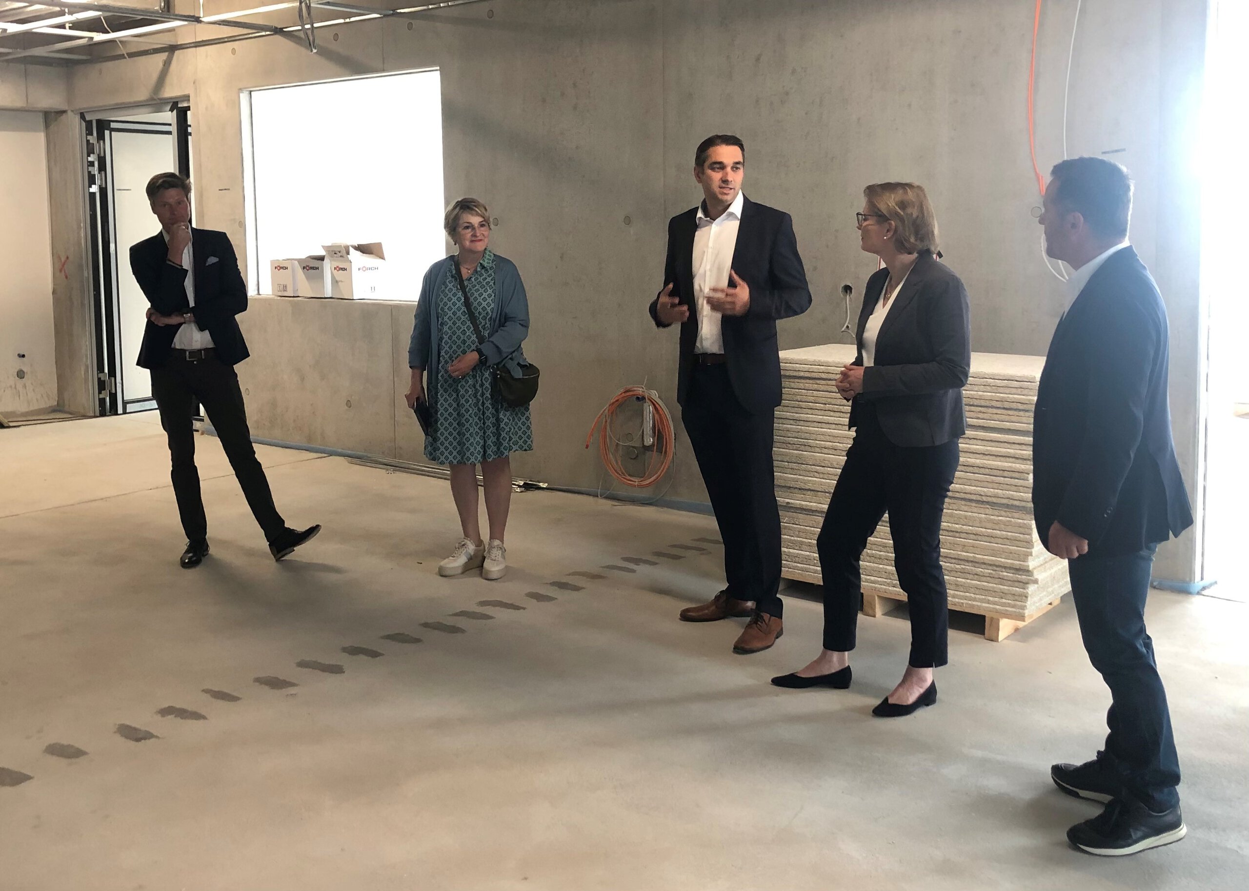 Die Bildungsministerin des Landes Rheinland-Pfalz Dr. Stefanie Hubig besuchte am Montag, 9. Mai 2022 die Baustelle der Pfrimmtal Realschule Plus in Worms. Seit 2020 realisiert a|sh hier die Neukonzeption der Schulform als Clusterlösung.
