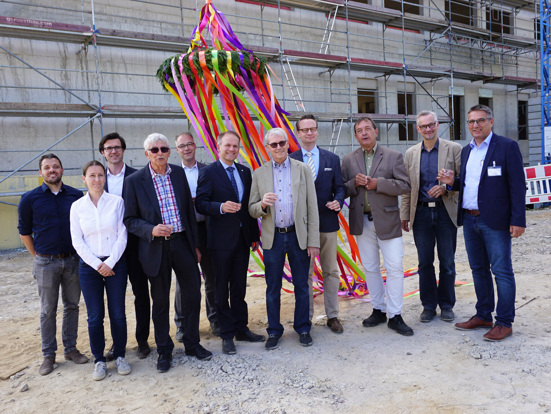 a|sh architekten feierten zusammen mit dem Geschäftsführer des Nettetaler Krankenhauses Jörg Schneider, Bürgermeister Christian Wagner und weiteren Gästen das Richtfest für den neuen Gesundheits-Rohbau aus Beton.