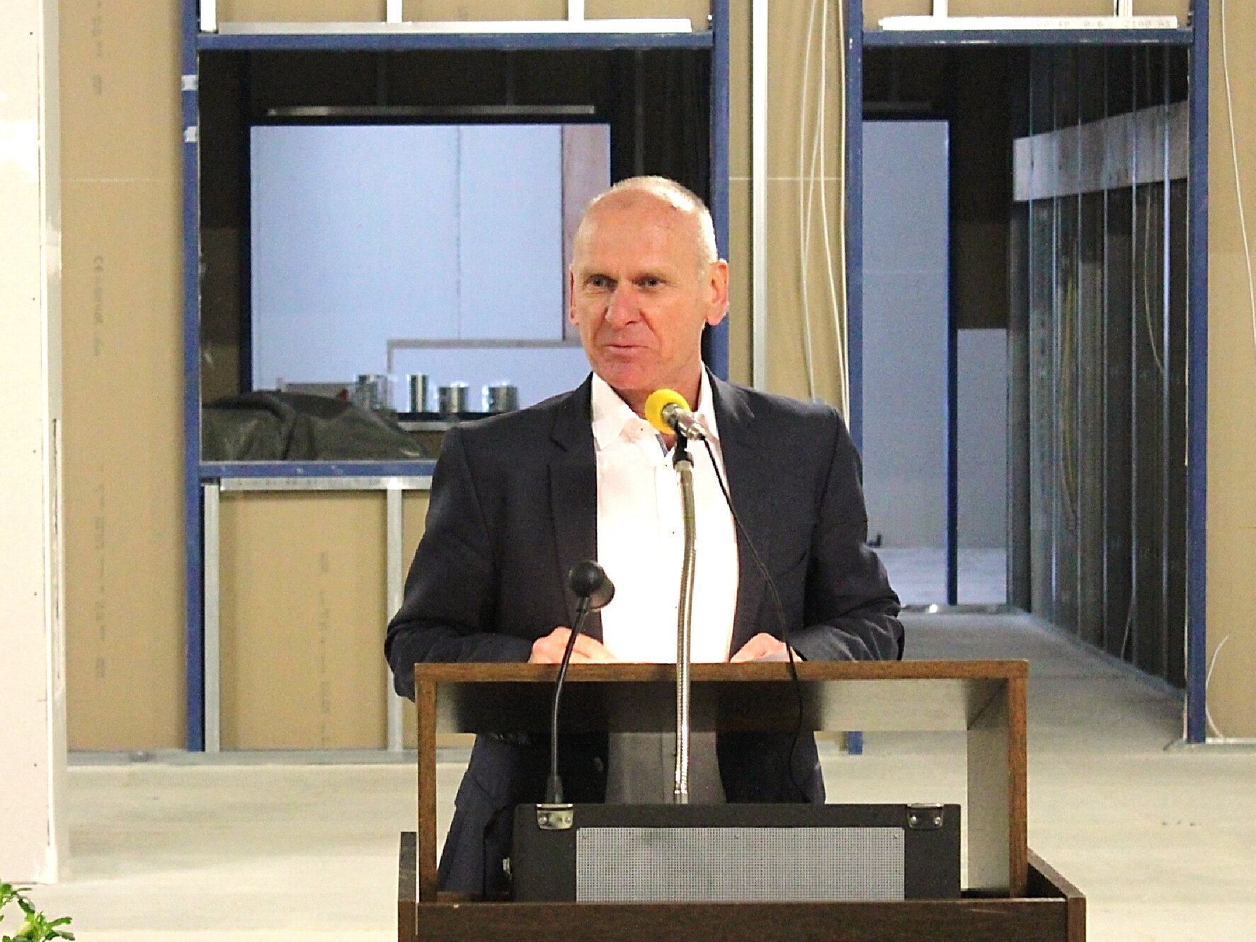 Professor Linus Hofrichter sprach am 01.04. zum Richtfest. Der achtgeschossige Klinikneubau von a|sh architekten ist der zweite große Baustein der Grunderneuerung des Klinikums Heidenheim.