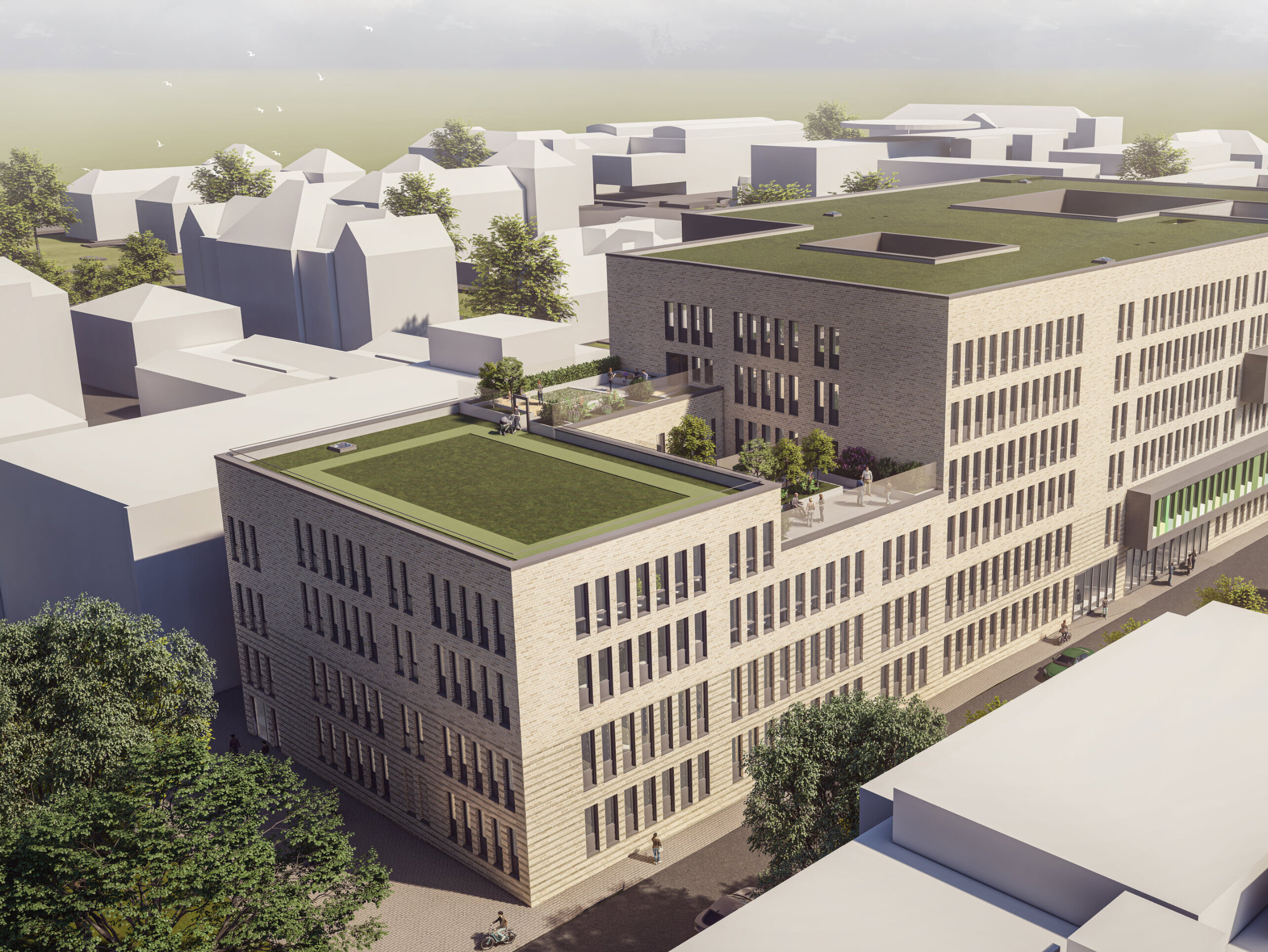 Vor vier Jahren erhielten a|sh sander.hofrichter architekten den Auftrag, das neue Zentrum für seelische Gesundheit (ZSG) im Herzen des Universitätsklinikums Dresden zu planen und umzusetzen. Auf etwa 28.000 m² wird bis 2024 ein Gebäude entstehen, in dem ein fließender Übergang von ambulanten, tagesklinischen und stationären Versorgungskonzepten angeboten wird. Neben den psychiatrischen und psychosomatischen Kliniken werden dort das Zentrum für Gesundes Altern, das Labordiagnostische Zentrum sowie die Early Clinical Trial Unit des gesamten Universitätsklinikums unter einem Dach vereint. Das drei- bis sechsgeschossige Gebäude positioniert sich selbstbewusst durch eine zeitlose, elegante Architektur im Zentrum des Klinikgeländes und nimmt dabei vielfach Bezug auf die städtebauliche Umgebung, indem sich die Außenkanten des Gebäudes an den flankierenden Straßenachsen orientieren, Staffelgeschosse auf die Vielfalt der Gebäudehöhen in der Umgebung reagieren und die sandsteinfarbene Klinkerfassade den regionaltypischen Elbsandstein in Farbigkeit und Struktur aufgreift.