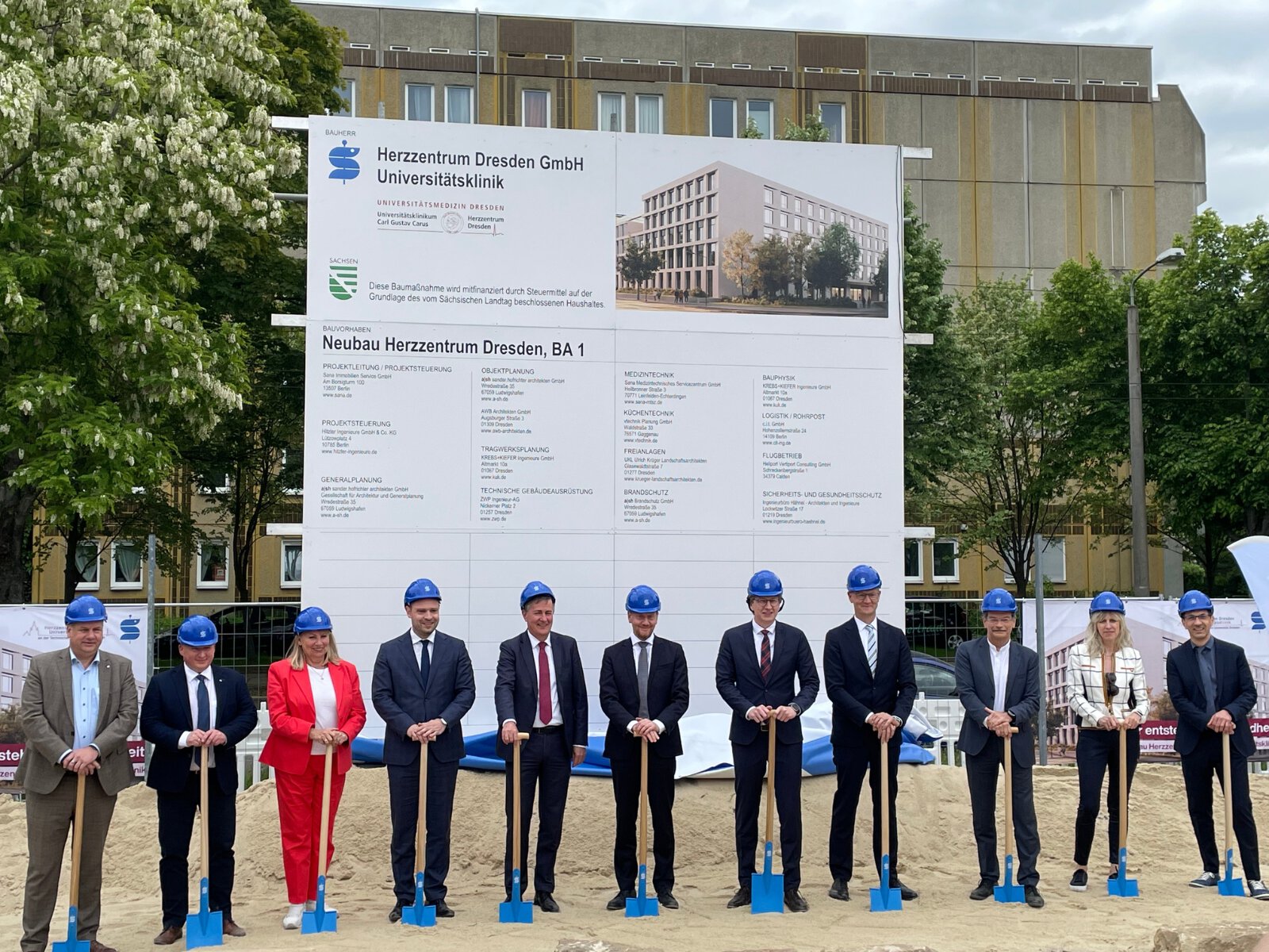 Mit dem gestrigen symbolischen Spatenstich startete der Neubau des Herzzentrums Dresden. Bis 2029 entsteht auf rund 18.000 m² eine hochmoderne Klinik für kardiologische und herzchirurgische Behandlungen – mit rund 220 Betten, Hybrid-OPs, Tagesklinik und intensivmedizinischen Kapazitäten.
