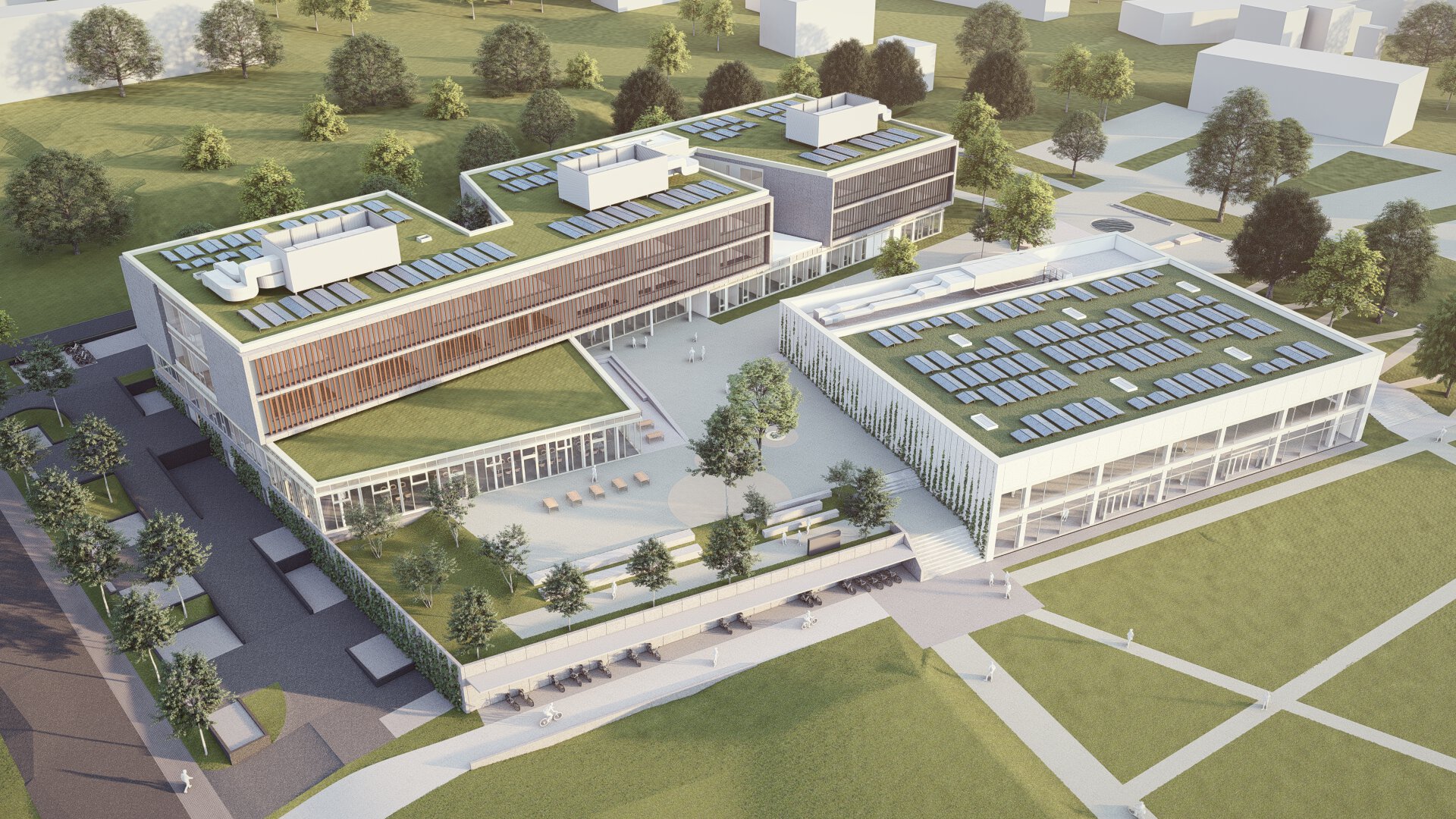 Mit knapp 56 Mio. Euro und 10 % Landesförderung wurde das Leuchtturmprojekt auf dem Konversionsareal „Am Buchberg“ nun begonnen. Eine fünfzügige Clusterschule mit Dreifeldsporthalle wird entstehen und Raum bieten für neue Pädagogik und Lernformate. Die Schüler sollen zukünftig in einzelnen Clustern Ihre Klassenräume finden und zusätzlich sog. Profilklassen bilden, wie zum Beispiel eine Bläserklasse, die den Spatenstich musikalisch begleitete. Die Realschule wird ein zentrales Element des neu entstehenden Quartiers bilden. Ein verbindender Grünstreifen zieht sich durch das Areal und wird neben der Schule Platz für weitere Aktivitäten bieten.
