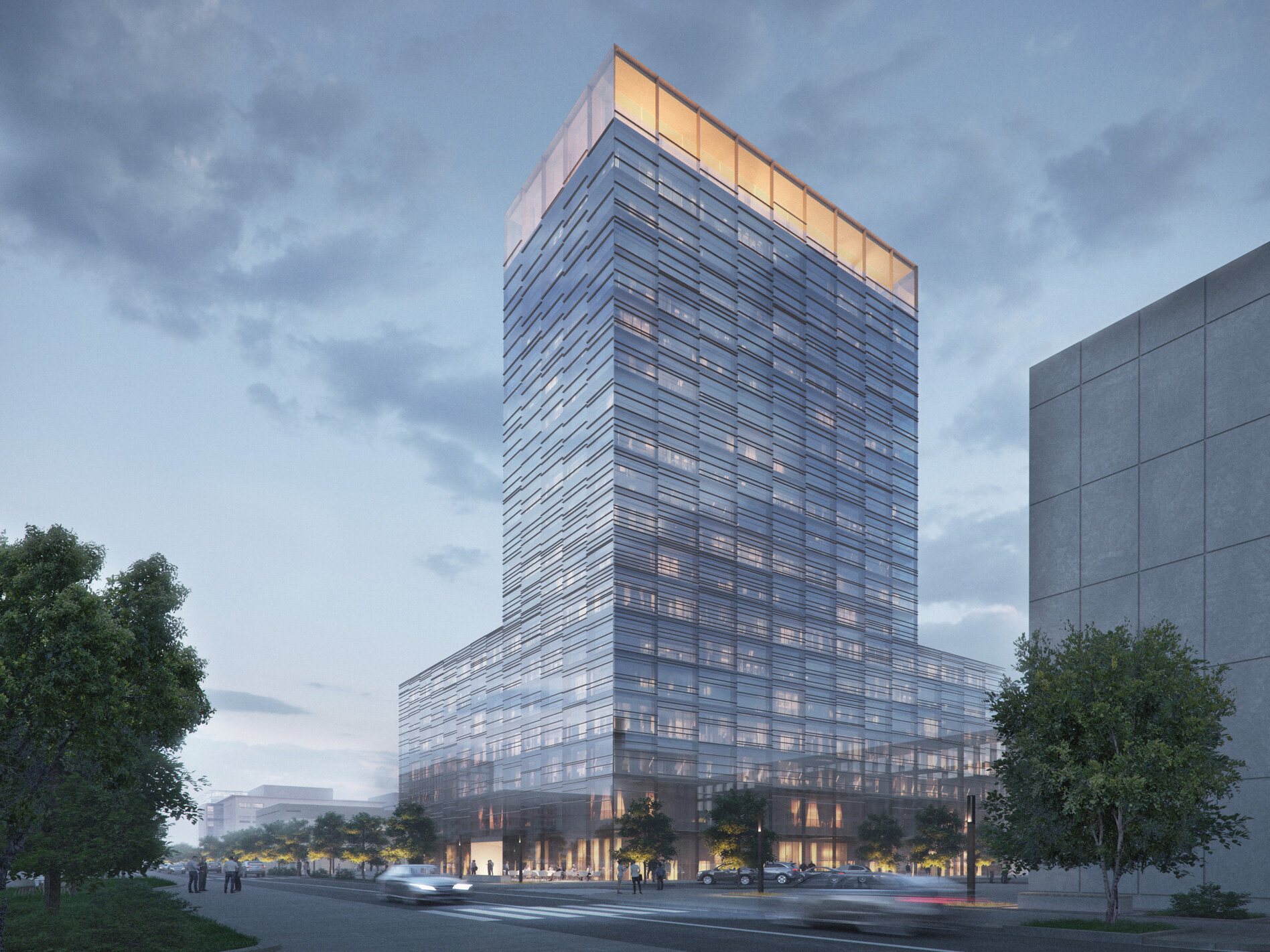 Das „Centre Hospitalier du Kirchberg“ besteht aus dem Hôpital Kirchberg und der Clinique Bohler und bildet einen Campus mit mehreren zwei- bis fünfgeschossigen Gebäuden. Der Entwurf nimmt das städtebauliche Leitbild des bestehenden Ensembles auf und interpretiert es als Sockelzone. Das zukünftige Patientenhotel setzt sich als städtebaulicher Hochpunkt auf diesen Sockel auf. Der Hotelturm des zukünftigen Klinikzentrums am Kirchberg-Plateau gelegen, setzt so ein städtebauliches Gegengewicht zu den Hochhäusern der Umgebung.