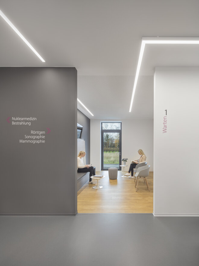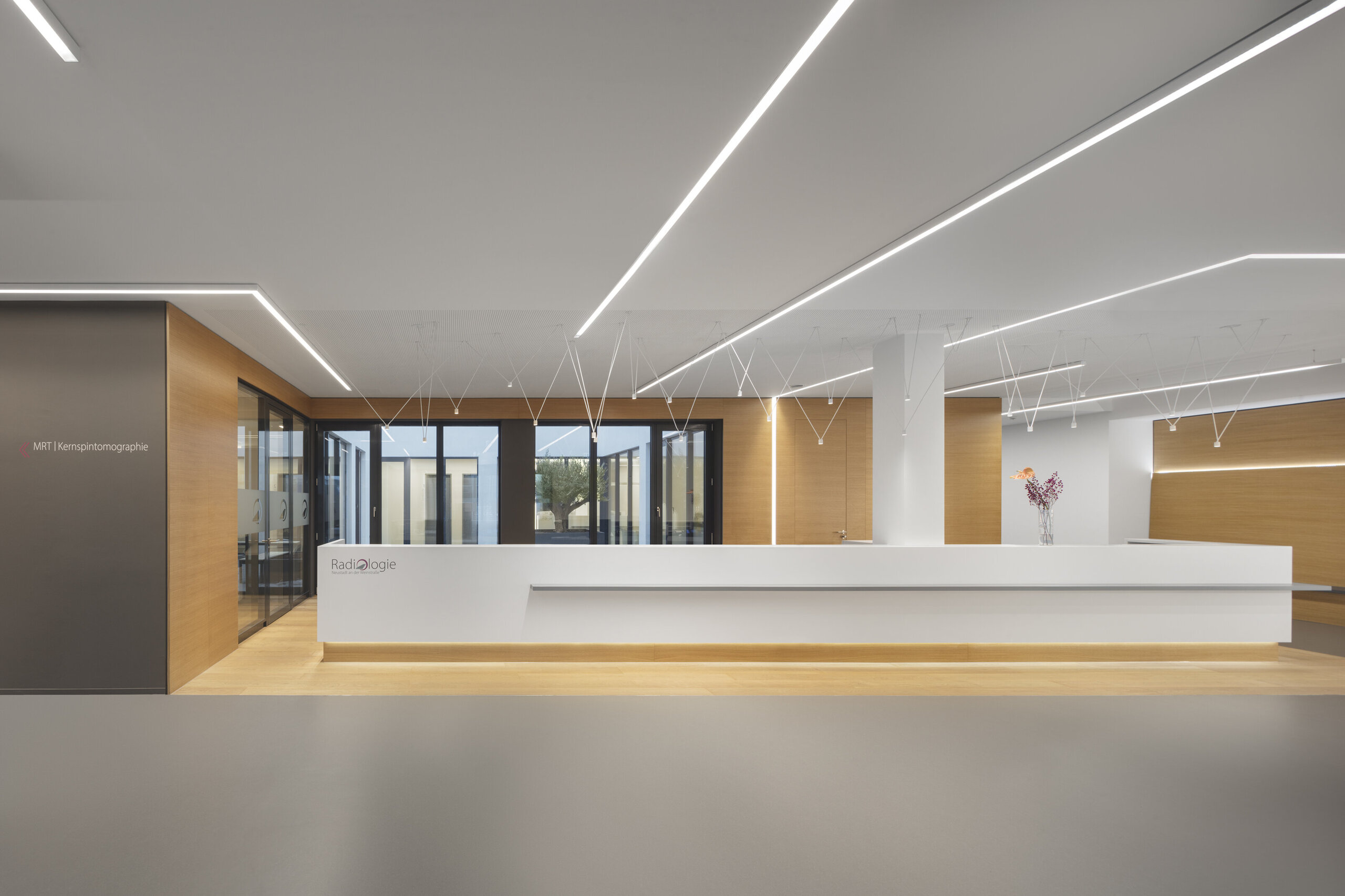 a|sh architekten haben mit ihrem Team aus Innenarchitekten, Medizinplanern und Energieberatern eine moderne und hocheffiziente radiologische Praxis mit einer klaren und zeitgemäßen Architektursprache entworfen.
