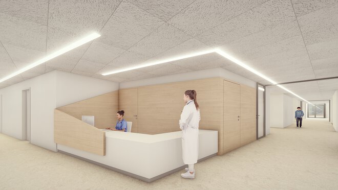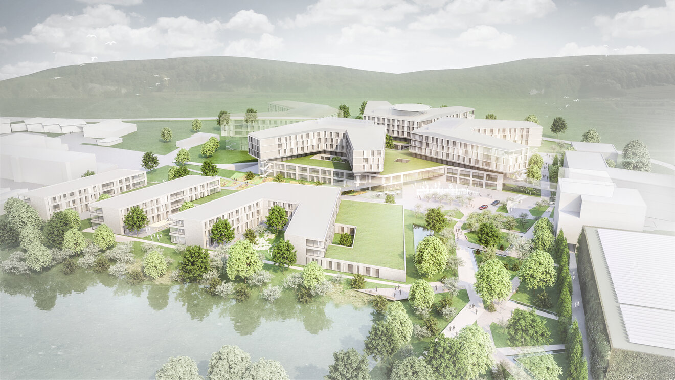 Mit dem grünen Gesundheitscampus entsteht in Lörrach ein ganzheitliches Gesundheitskonzept für Körper und Seele. Qualitätsvolle Räume mit hoher Aufenthaltsqualität und klarer Orientierung schaffen – dank funktionaler Zusammenhänge sowie innovativer, durchdachter Gestaltung – eine heilsame Umgebung für Patient:innen.