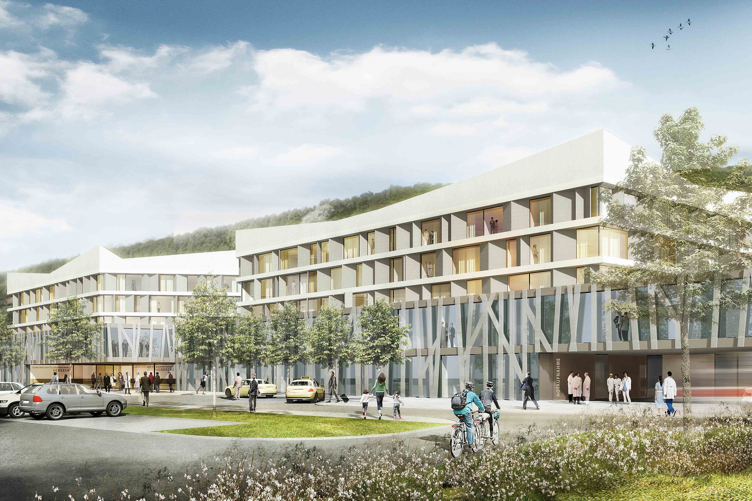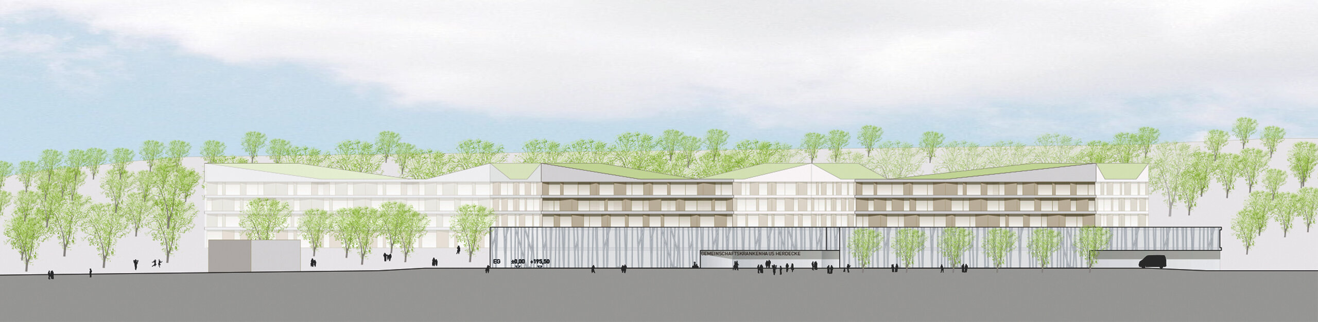 Das Gemeinschaftskrankenhaus Herdecke, 1969 eröffnet, ist das erste anthroposophisch ausgerichtete Krankenhaus in Deutschland. 2016 entstand im Rahmen eines Planungsgutachtens zum Neubau und zur Sanierung des Krankenhauses der Entwurf von a|sh in Kooperation mit H2M Architekten + Stadtplaner GmbH, der den 1. Preis erhielt. Die Leitidee des anthroposophischen Krankenhausentwurfs - Natur und Licht treten in einen bewussten Dialog. Das neue Haus dreht und wendet sich. Eine neue charakteristische Grundfigur – die Endlosschleife ist geschaffen. Im Mittelpunkt steht der Mensch und das Miteinander von Patient, Personal und Besucher.