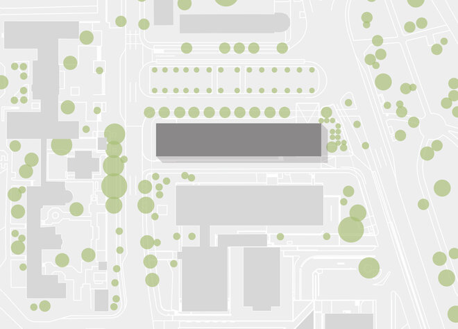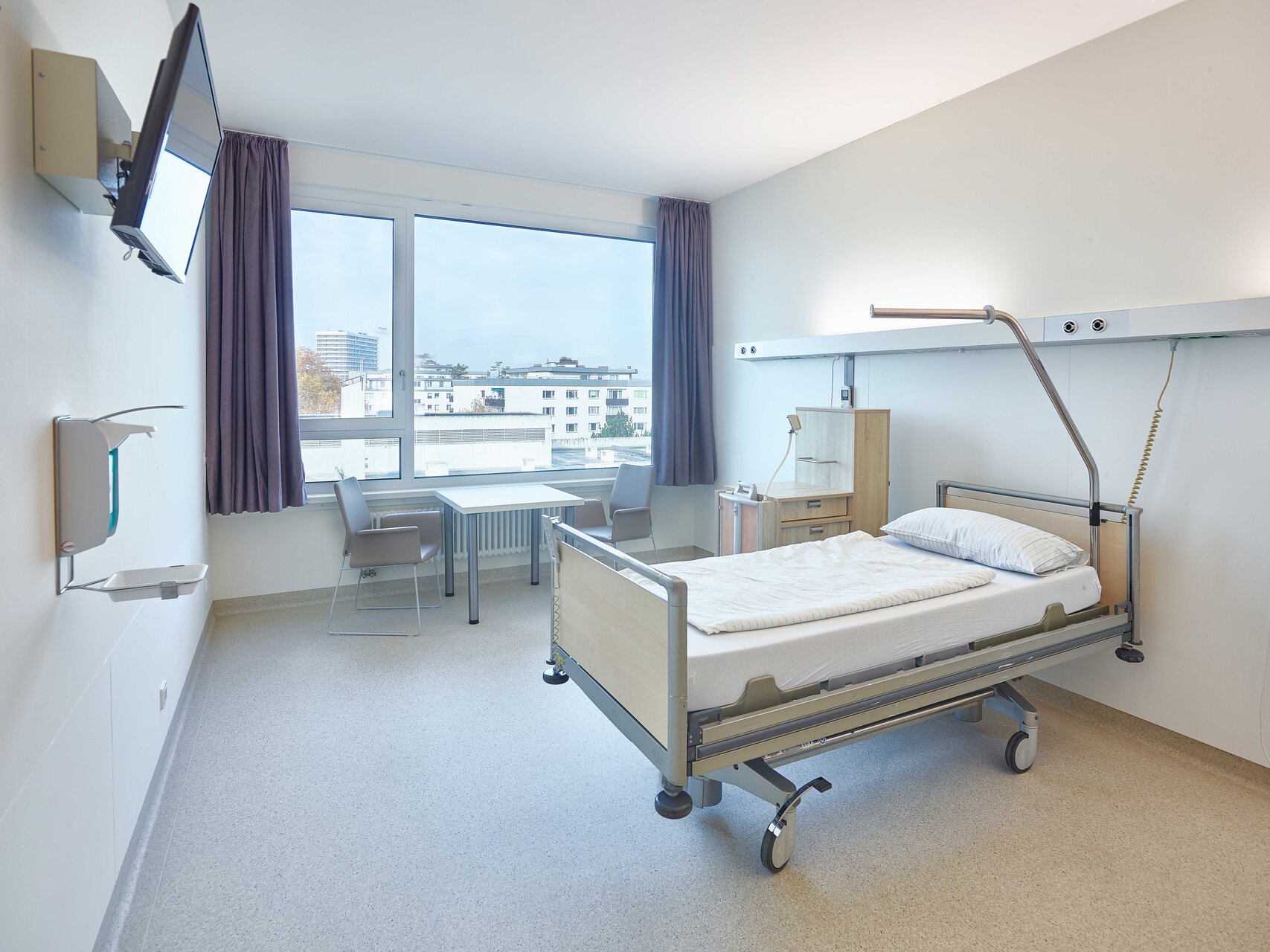 Bereits nach 3 ½ Jahren Planungs- und Bauzeit konnte die 5.700 m² große Klinikfläche übergeben werden. Mit seiner vorgehängten Streckmetall-Fassade, den Fensterbändern und durchlaufenden Eternitbrüstungen ist die Aufstockung markant und fügt sich stimmig in den Klinikkomplex.