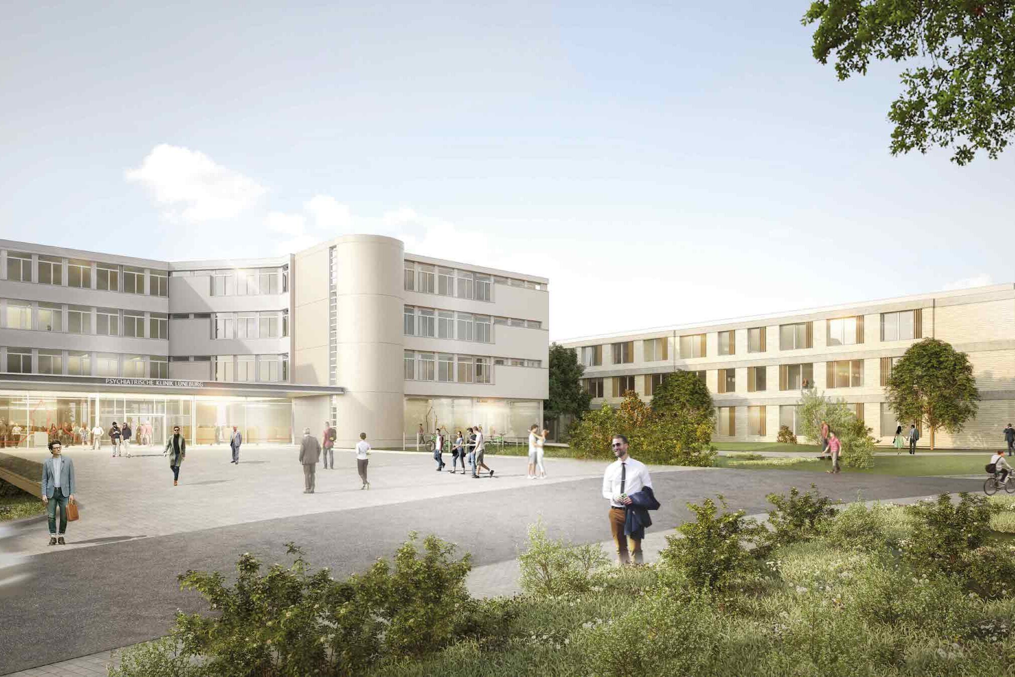 Die Psychiatrische Klinik Lüneburg (PKL) ist ein Fachkrankenhaus für Psychiatrie und Psychotherapie, Kinder- und Jugendpsychiatrie und Psychotherapie sowie Forensische Psychiatrie und Psychotherapie. Darüber hinaus ist sie Akademisches Lehrkrankenhaus des Universitätsklinikums Hamburg- Eppendorf (UKE). Seit mehr als 100 Jahren werden in der Psychiatrischen Klinik Lüneburg psychisch erkrankte Menschen versorgt. Eingebettet in einer Parklandschaft liegen pavillonartig die denkmalgeschützten 39 Gebäude der Klinik. Das bestehende Hauptgebäude stammt aus den frühen 70er Jahren. Ziel des Wettbewerbes war die Schaffung eines Klinikzentrums der Klinik für Psychiatrie und Psychotherapie für Erwachsene (KPP). Diese ist derzeit im Hauptgebäude sowie verteilt über das Klinikgelände untergebracht. Daher soll ein neues Zentrum durch Umbau und Neubebauung für die Umsetzung moderner medizinischer Konzepte entstehen.