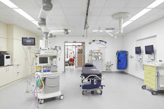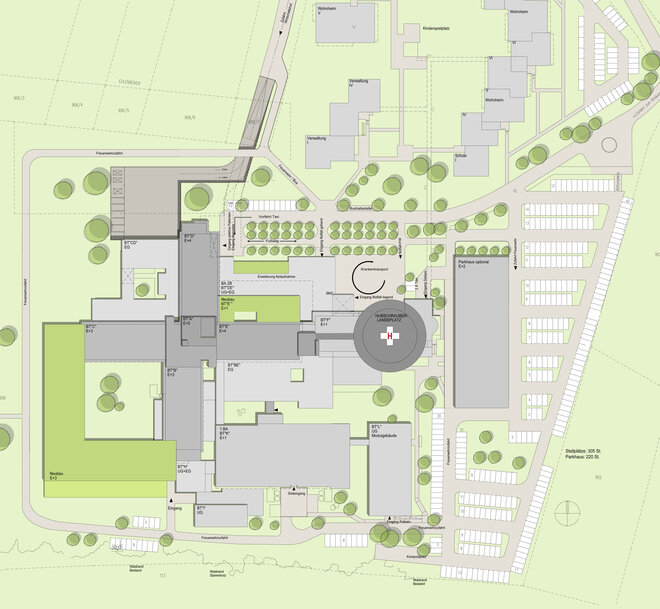 Umstrukturierung der Notaufnahme und Errichtung einer neuen Aufnahmepflege, Erweiterung der Funktions- und Pflegebereiche durch einen fünfgeschossigen Neubau in Anbindung an die südwestlichen Bestandsflügel, Optimierung der logistischen Prozesse durch einen neuen Wirtschaftshof, Sanierung und Umstrukturierung der ehemaligen Pflegebereiche und die Errichtung eines neuen Hubschrauberlandeplatzes.