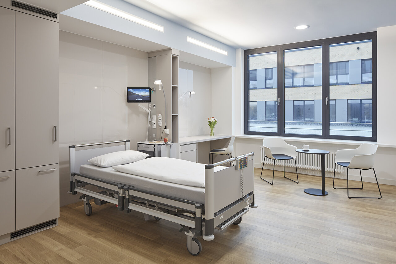 - 3 Pflege-Stationen mit 90 Patientenzimmern (davon 20 Betten für Wöchnerinnen und 12 Einbettzimmer mit Wahlleistungsausstattung).