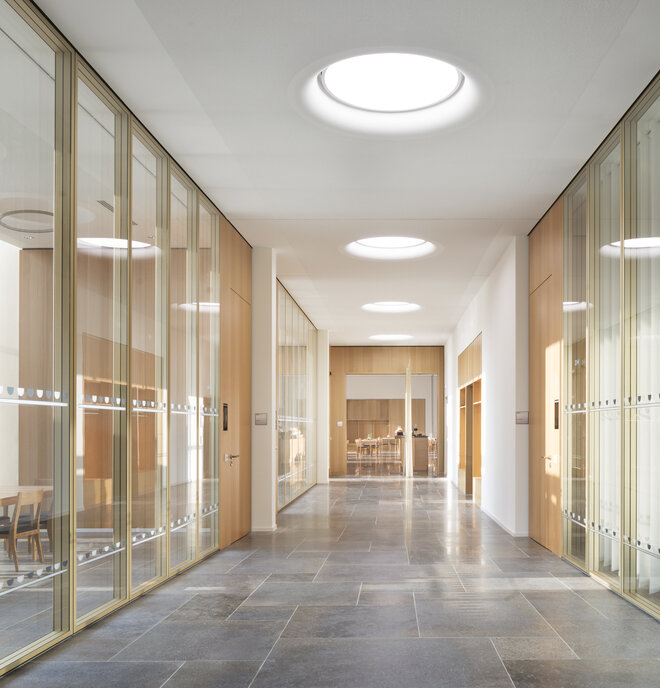 Das Preisgericht lobte an dem Sanierungskonzept, dass dem denkmalgeschützten Deutschhaus auf subtile Weise eine neue Zeitschicht mit eigenständigem, modernem Charakter hinzugefügt werde.