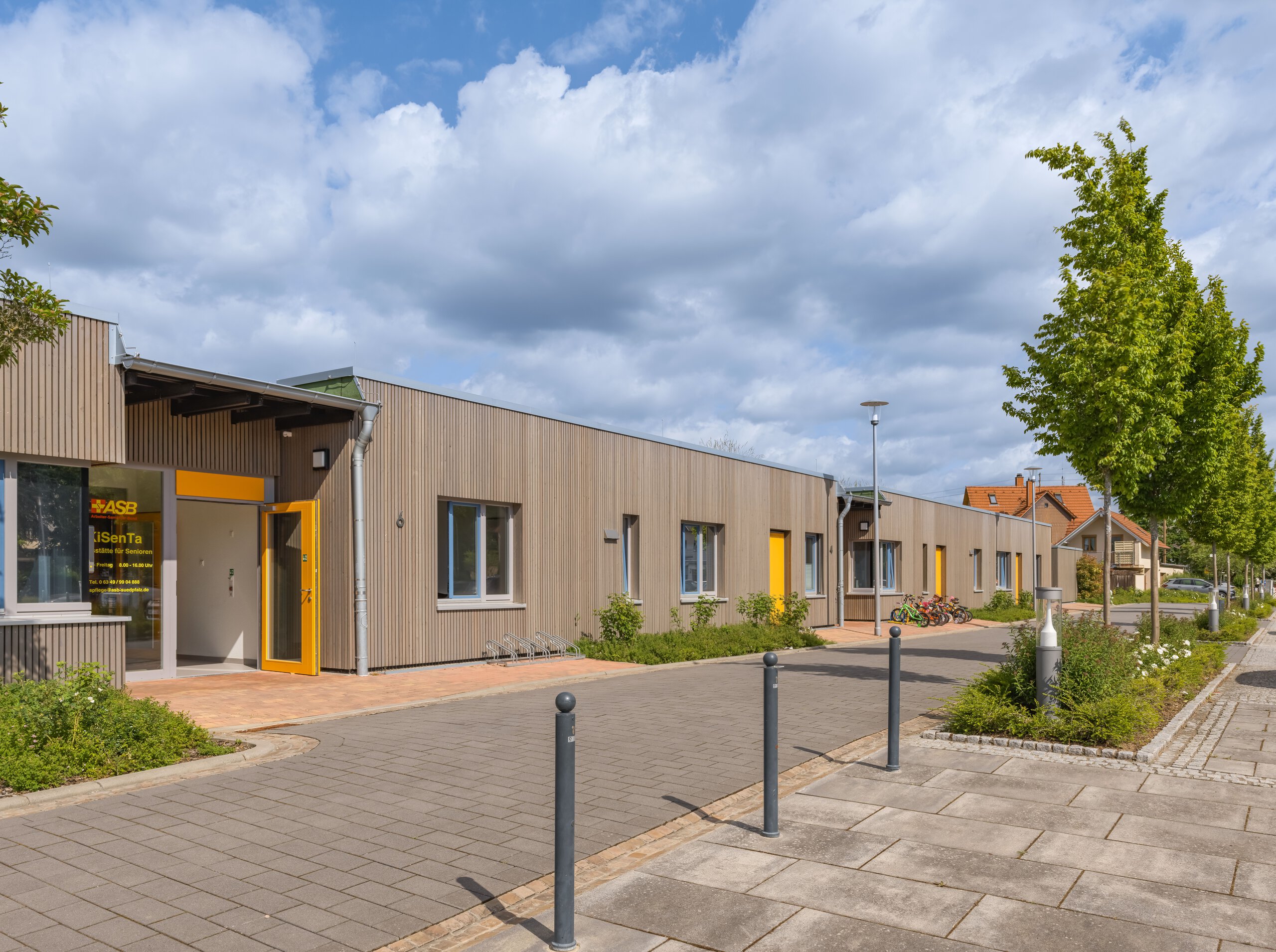 In Kooperation mit dem Architekturbüro Seepe und Hund einstand ein eingeschossiger Holzbau, der sich harmonisch in die Dorfstruktur einfügt. Direkt am Dorfplatz gelegen, bildet der Neubau eine klare Raumkante und wirkt verbindend im Ortsbild.