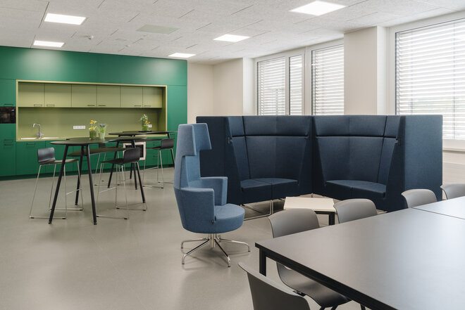 - einem Ausweich- oder Gruppenraum am Eingang des Clusters, nutzbar als Ganztagesraum oder Differenzierungsraum sowie