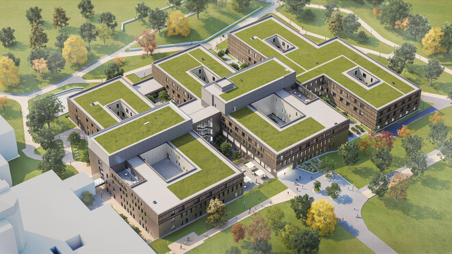 Am Klinikum Ingolstadt entsteht ein Neubau für das angegliederte Zentrum für psychische Gesundheit: Ein pavillonartiges Gebäudeensemble aus sechs hellen Atriumhäusern bietet künftig Raum für sämtliche psychiatrischen und psychotherapeutischen Angebote, darunter spezialisierte Bereiche wie Suchtmedizin, Gerontopsychiatrie und Adoleszentenstation.