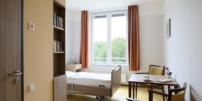Insgesamt stehen 87 Plätze für die vollstationäre Pflege zur Verfügung, aufgeteilt in acht Wohngruppen. Die Wohngruppen in den einzelnen farblich zu unterscheidenden Gebäudeflügeln stellen eigenständige Einheiten dar, in denen die Bewohner je nach individueller Situation betreut werden.