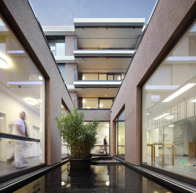 Die Seniorie Ste Zithe ist ein Seniorenpflegeheim in der ländlichen Gemeinde Contern in Luxemburg. Das künftige Zuhause von 140 Senioren wurde hier in Form eines Wohngruppenmodells konzipiert. Bei der Entwicklung des Grundrisstyps wurden besonders die Anforderungen an die Betreuung, Pflege und das Lebensumfeld dementer Menschen berücksichtigt. Das Konzept wurde in enger Zusammenarbeit zwischen Bauherr und Architekt erarbeitet.