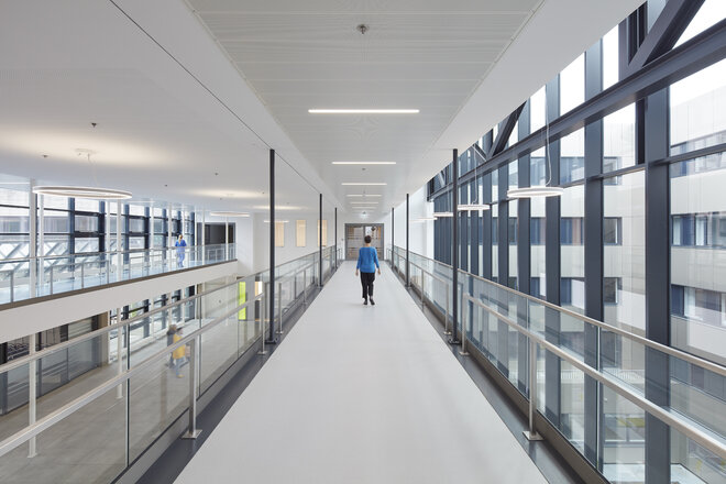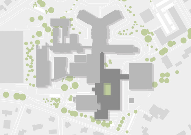 Auf die Zukunft ausgerichtet. Das Konzept von a|sh architekten ermöglicht ein Weiterbauen und stetiges Erneuern der Klinik in den kommenden Jahren. Mit dem Neubau wurden interne Betriebsabläufe im Bestand optimiert sowie Patienten- und Besucherströme neu organisiert.