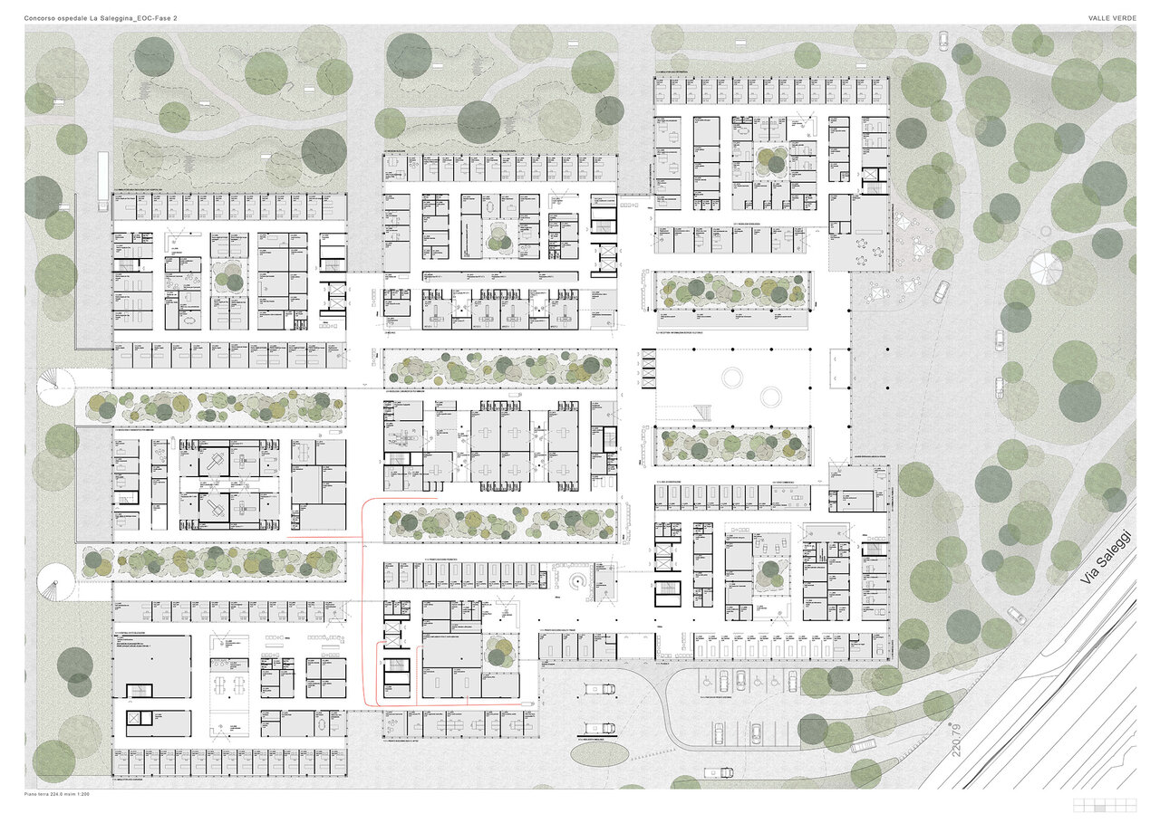 - In der ersten Phase mit einem Zeitrahmen bis 2030, ist geplant, ein neues Regionalspital Bellinzona für zunächst 240 Patienten mit einer Fläche von etwa 95.000 m² zu errichten, das das bestehende Spital durch das neue "Ospedale Regionale di Bellinzona" ersetzt.