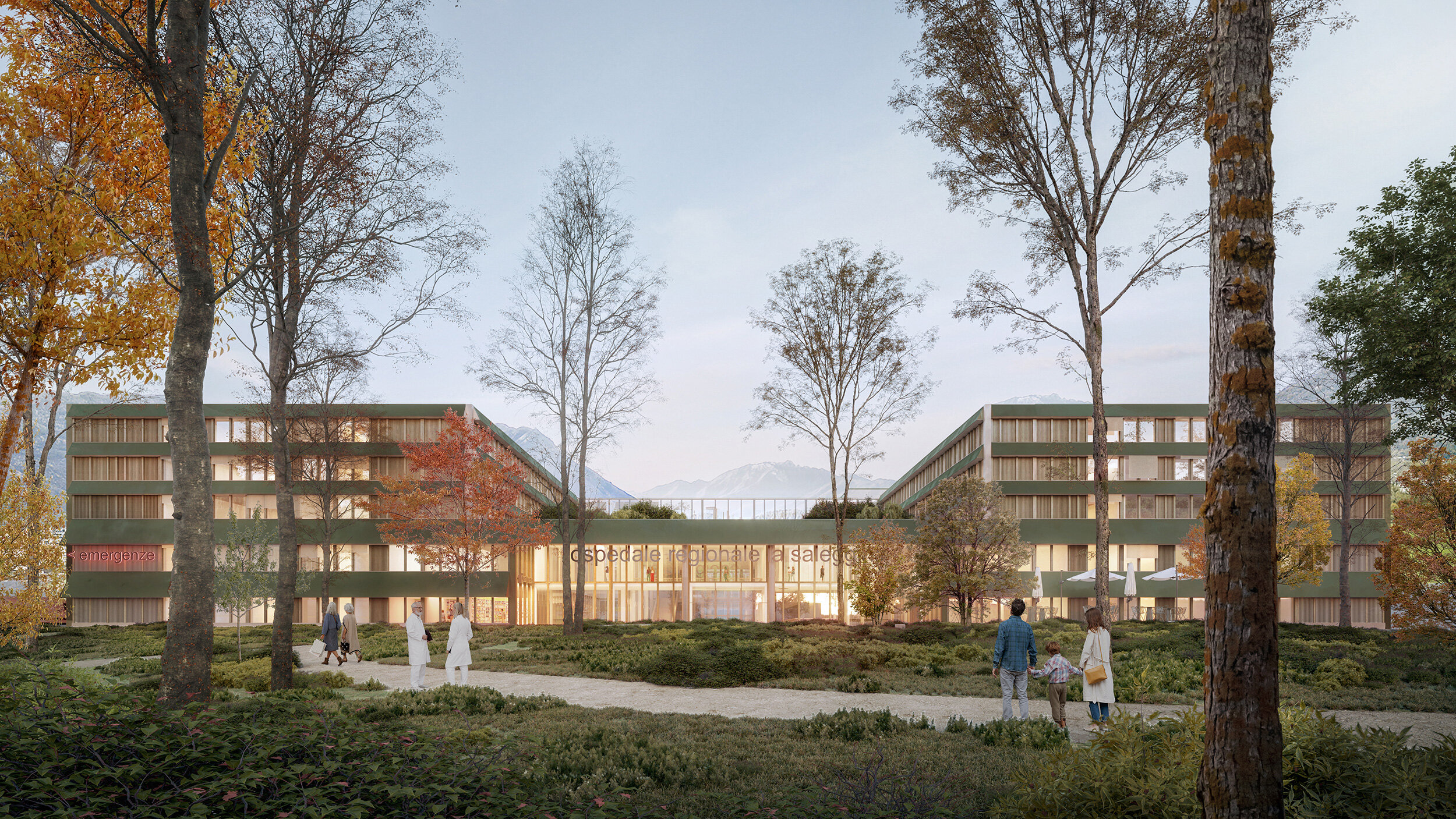 Der Entwurf "Valle Verde" in Bellinzona Tessin, Schweiz, präsentiert sich als wegweisendes Projekt in Pavillonbauweise, das auf Modularität, Nachhaltigkeit und eine harmonische Integration in die natürliche Umgebung setzt. Entwurfsaufgabe war, einen Krankenhausneubau zu entwickeln, der in den kommenden Jahren das bestehende Regionalspital San Giovanni in Bellinzona ersetzt.
