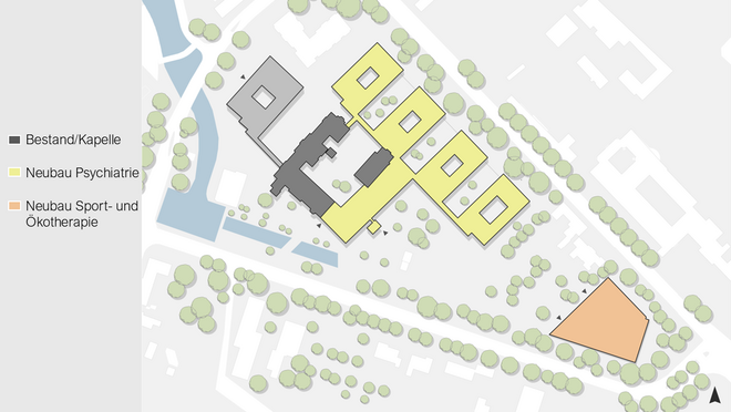 Umstrukturierung, Erweiterung, Neubau Psychiatrie und Sporthalle